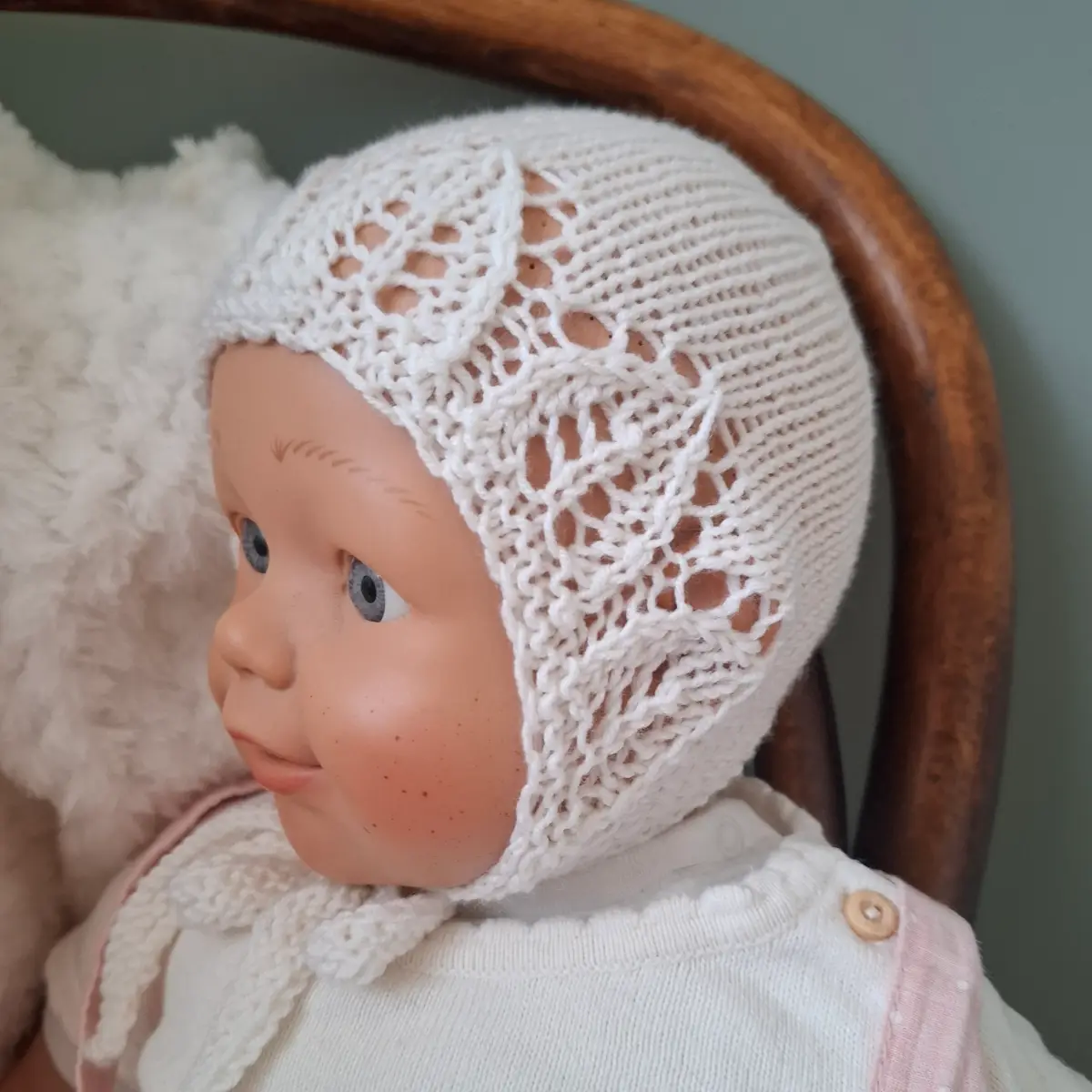 Czapka wykonana ręcznie z włóczki bardzo przyjemnej i miłej w dotyku, przeznaczonej na wyroby dla dzieci. Idealna na sezon wiosna/jesień, chroni przed zimnem i wiatrem a jednocześnie nie przegrzewa delikatnej główki dziecka. Dokładnie przylega do główki dziecka. Jest wykonana bezszwowo, nigdzie nie uciska główki. Ozdobiona ażurowym wzorem wiosennych listków.