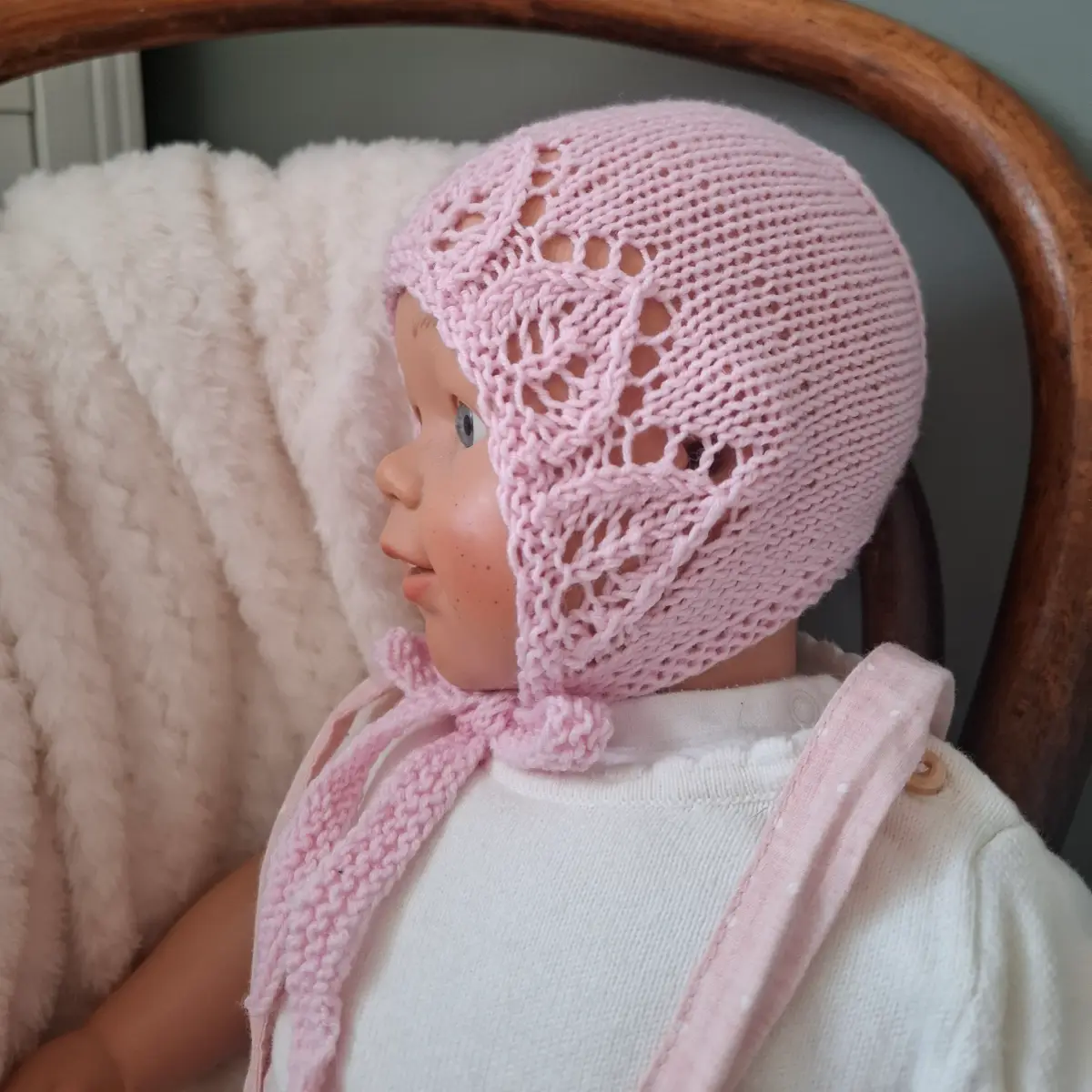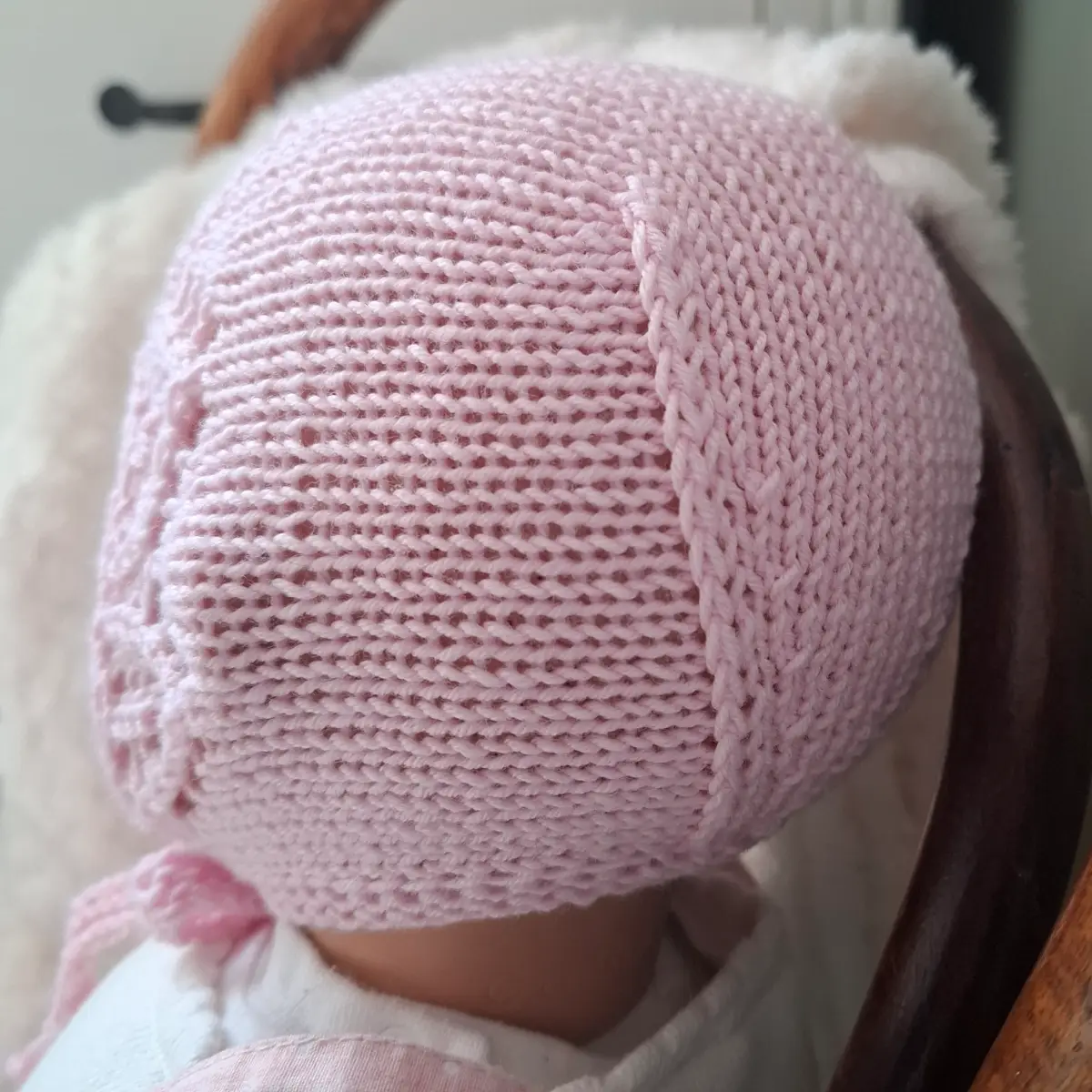 Czapeczka dla niemowląt wykonana ręcznie z wełny merino, rozmiar 0 – 2 miesięcy, dostępna w kolorze różowym