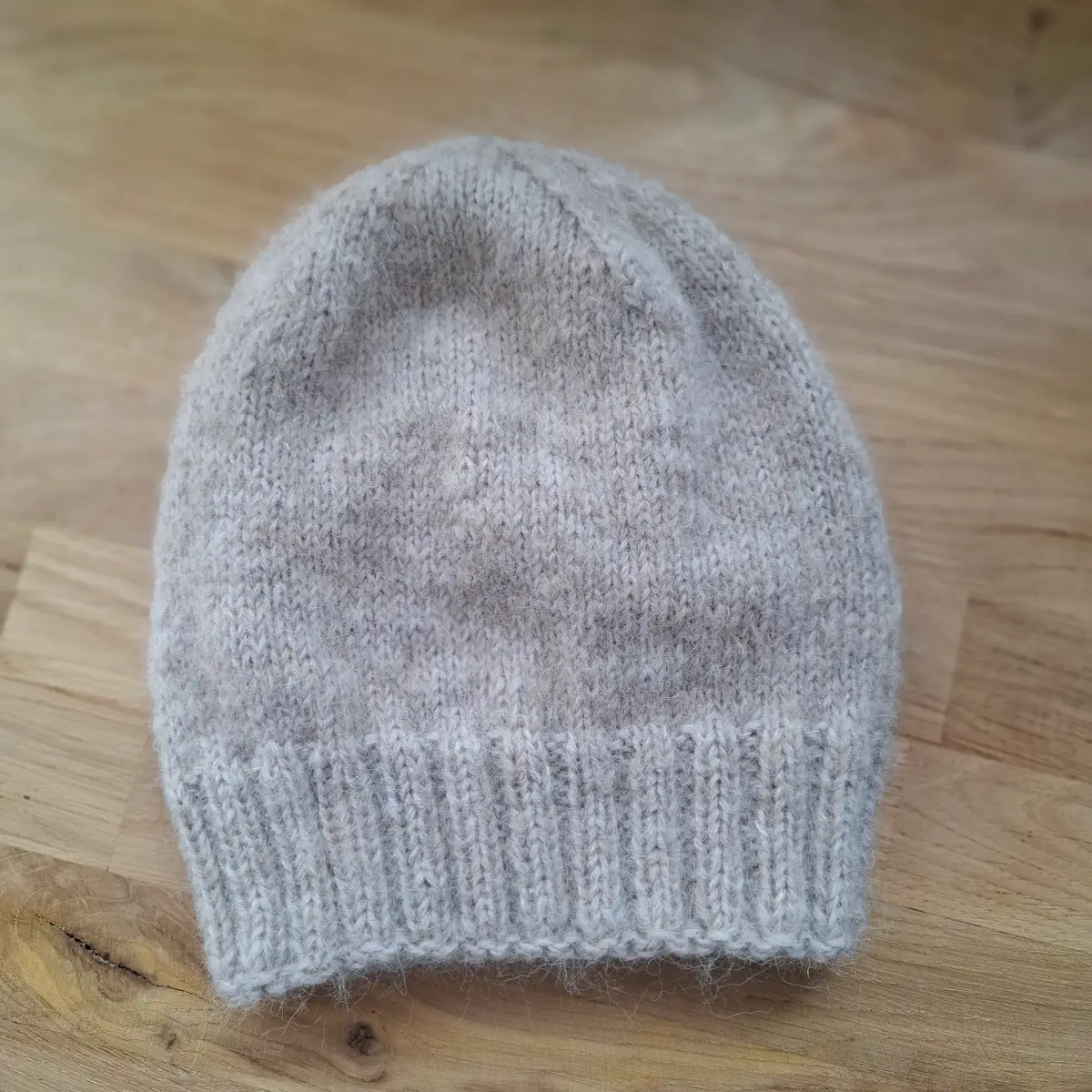 Czapka damska z merynosa, alpaki i jedwabiu. Rozmiar uniwersalny, kolor beżowy.