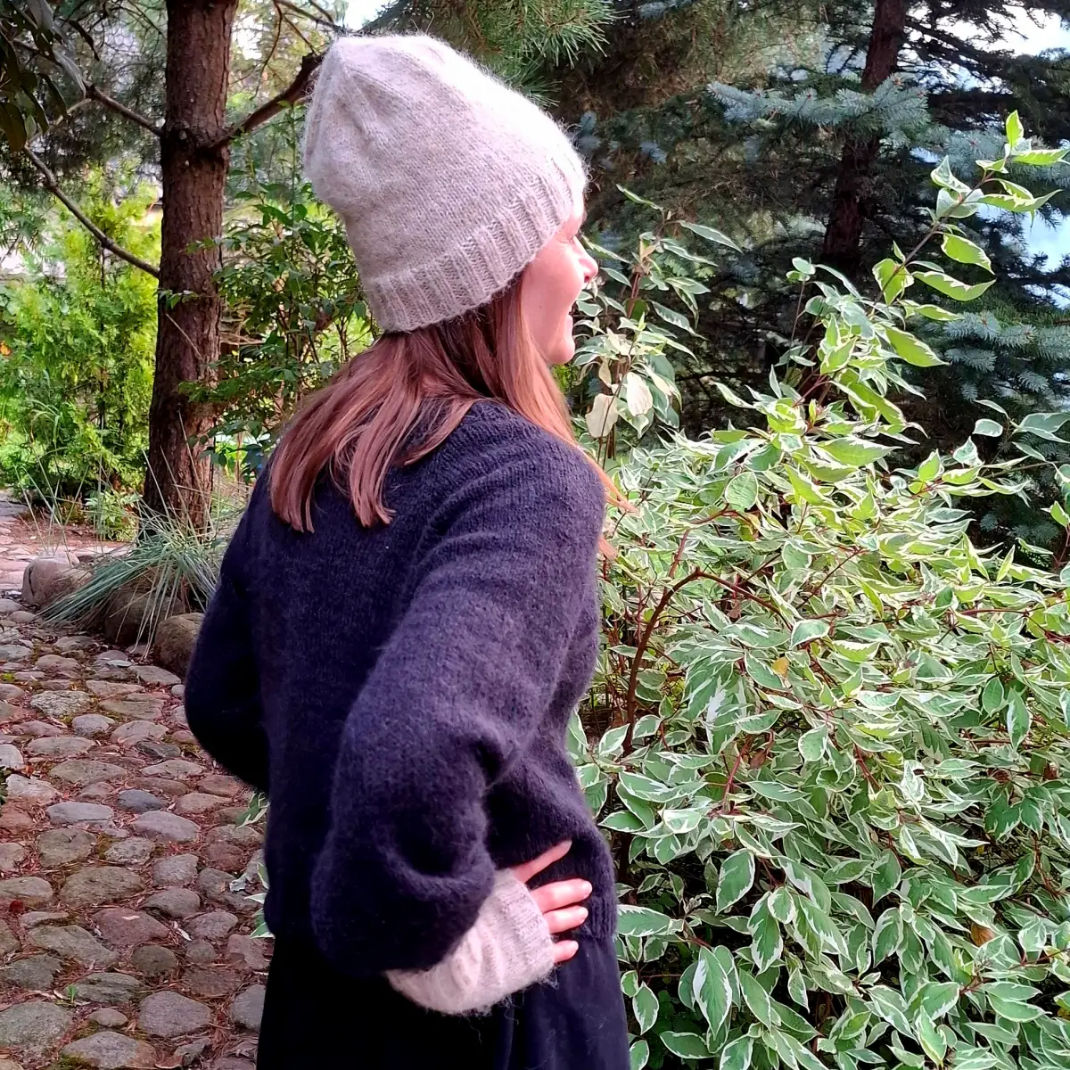Czapka damska wykonana z naturalnych włóczek wełnianych (66% merino, 25% alpaka, 9% jedwab). Połączenie włóczek dające miękkość i puszystość alpaki, delikatność jedwabiu oraz ciepło i elastyczność merynosa. Czapka ogrzeje głowę w chłodne dni.