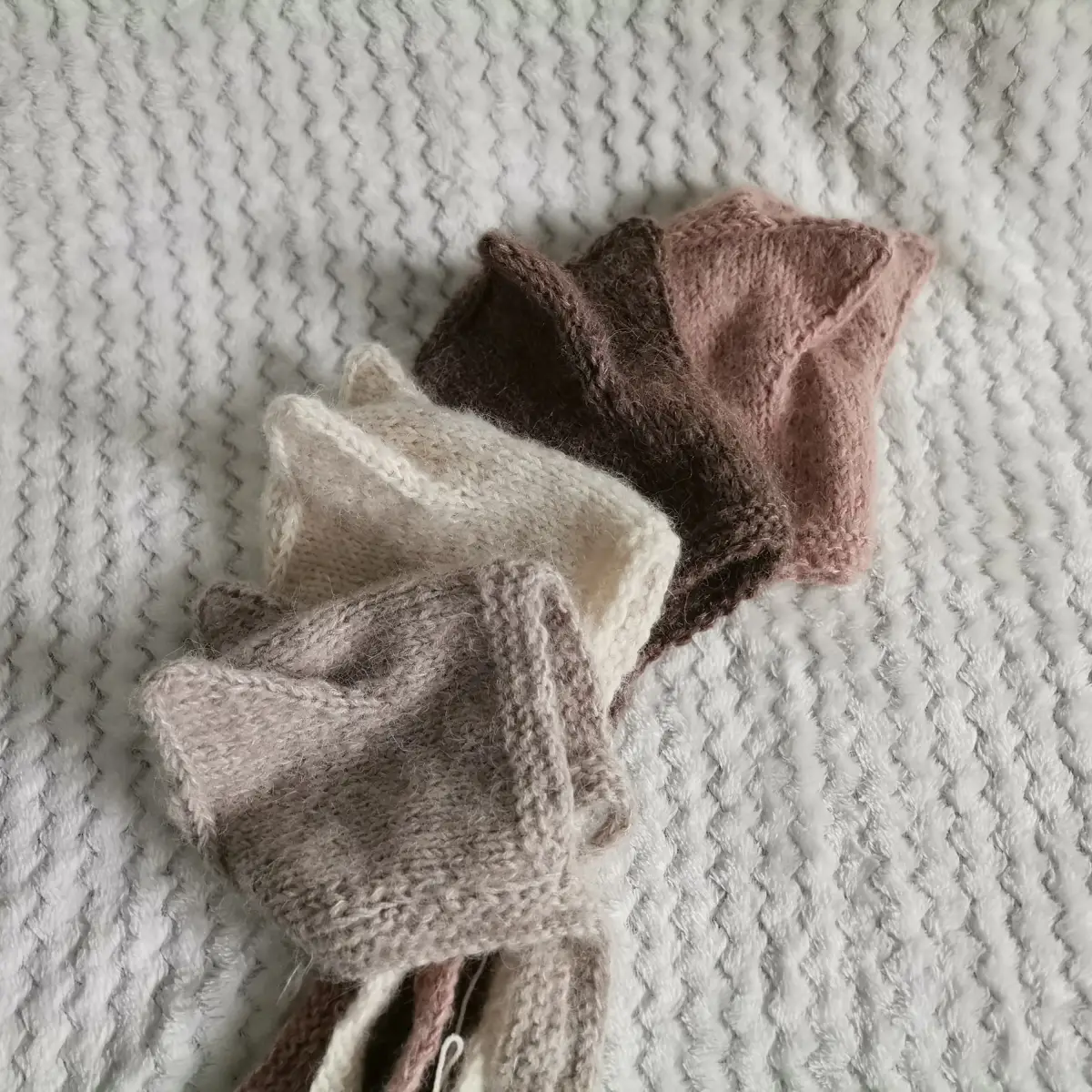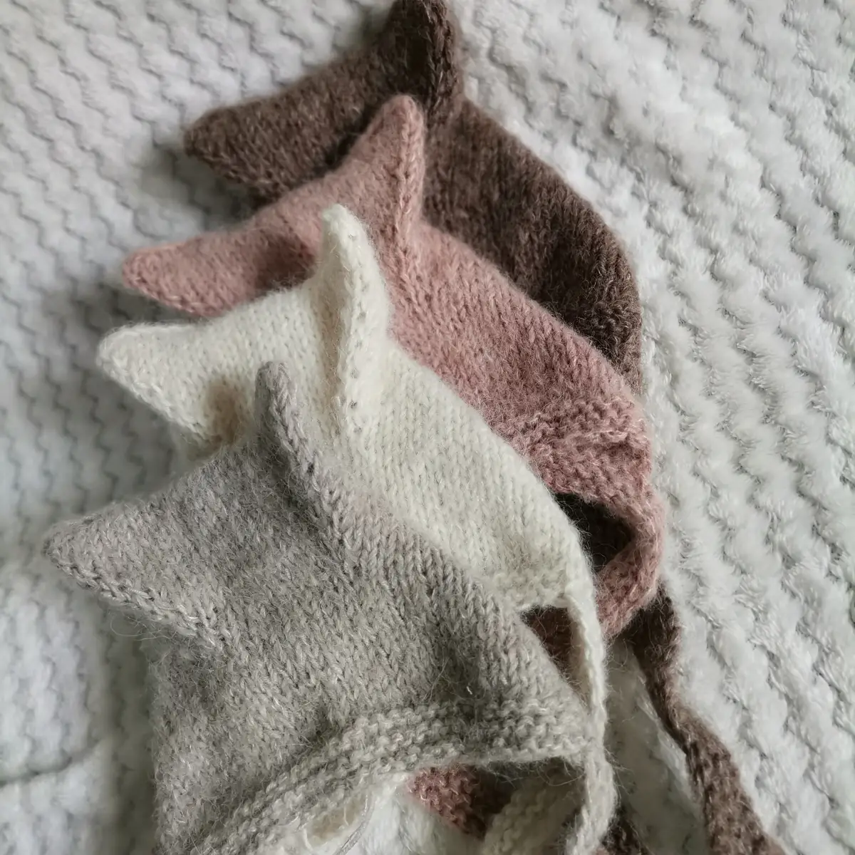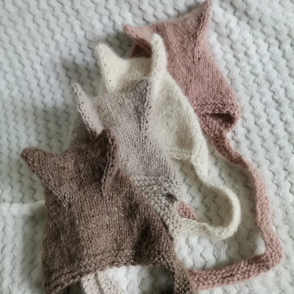 Czapeczka Kitty zrobiona z włóczki z wełny merino, alpaki oraz jedwabiu, dostępna w czterech kolorach i dwóch rozmiarach