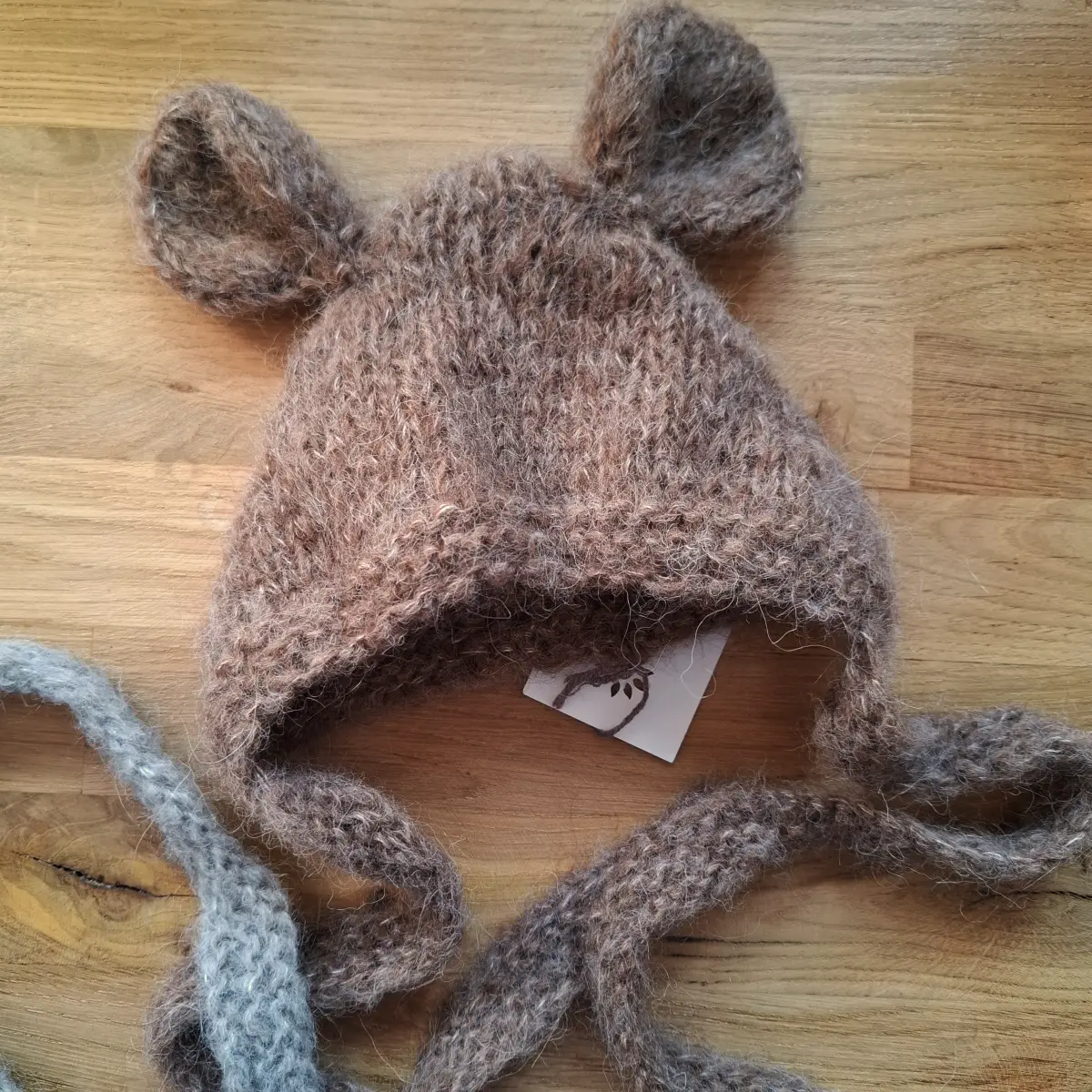 Czapeczka miś zrobiona z włóczki z wełny alpaki oraz jedwabiu, kolor brązowy, rozmiar 3-6 miesięcy.