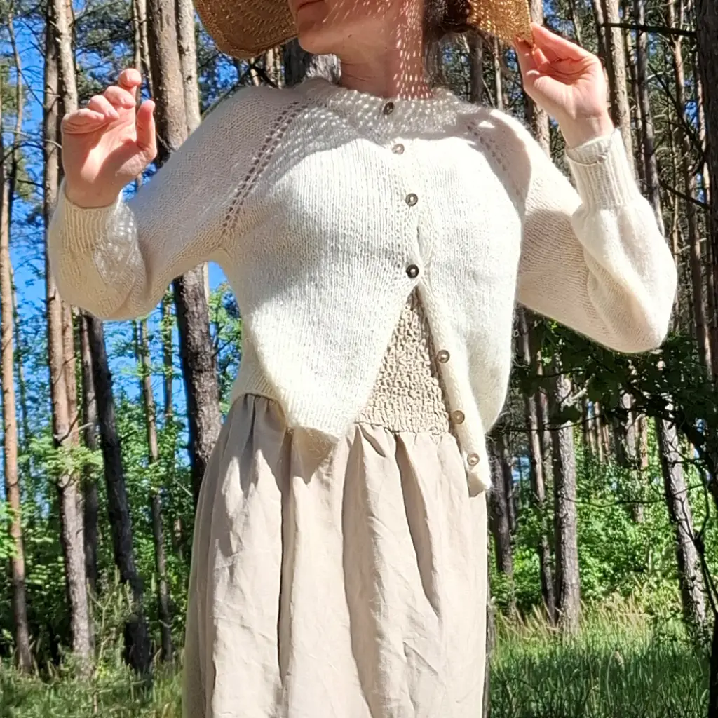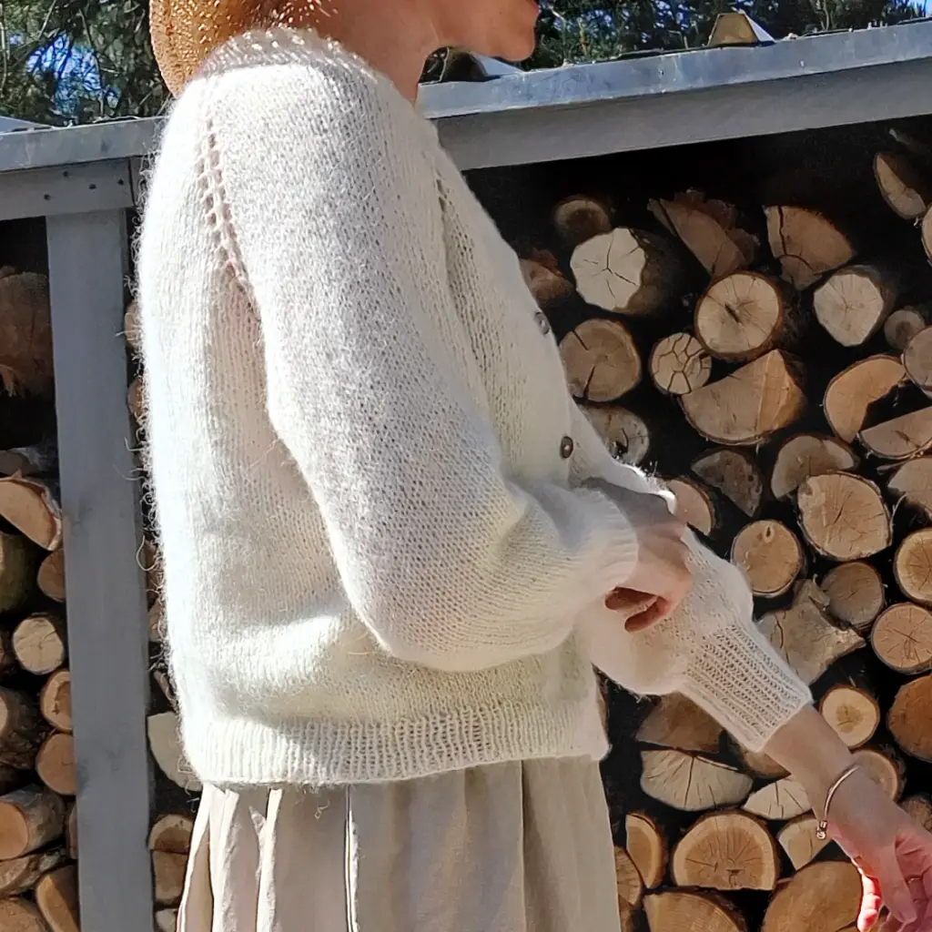 Otul się sweterkiem z naturalnej włoskiej wełny, która jest bardzo lekka, delikatna i zupełnie nie gryzie. Możesz nosić go przez cały rok, gdyż zrobiłam go z naturalnej wełny i ma świetne właściwości termoregulacyjne.