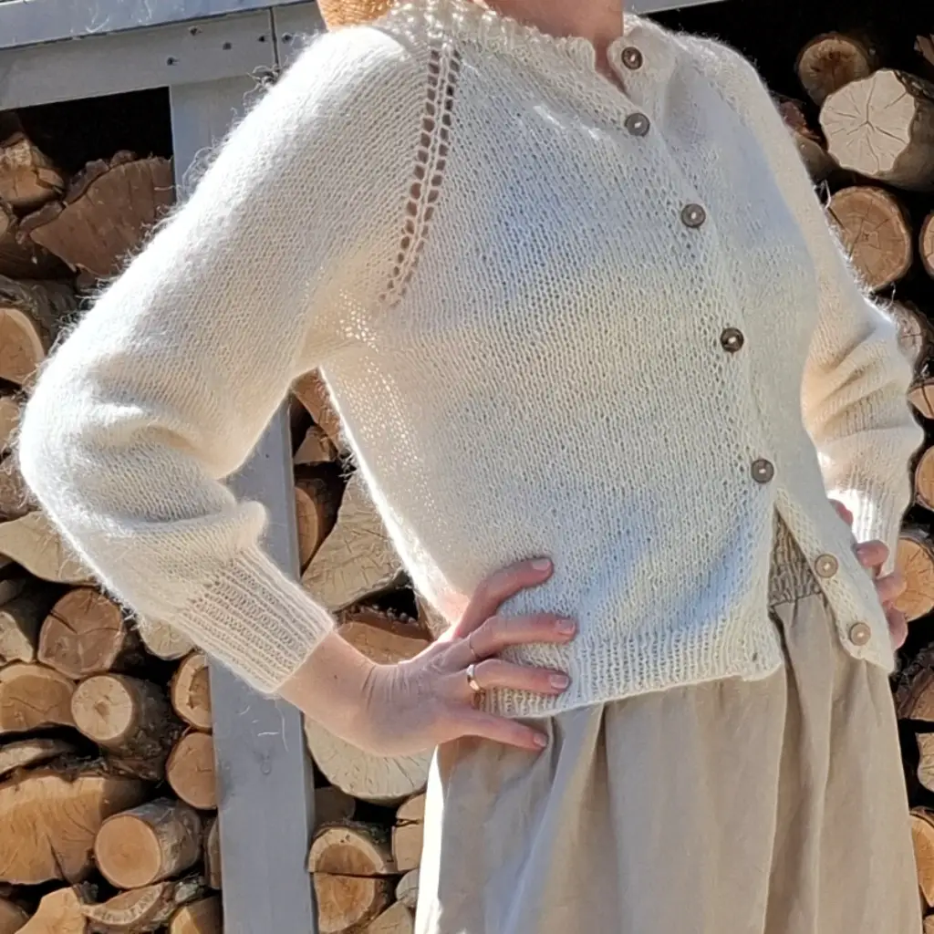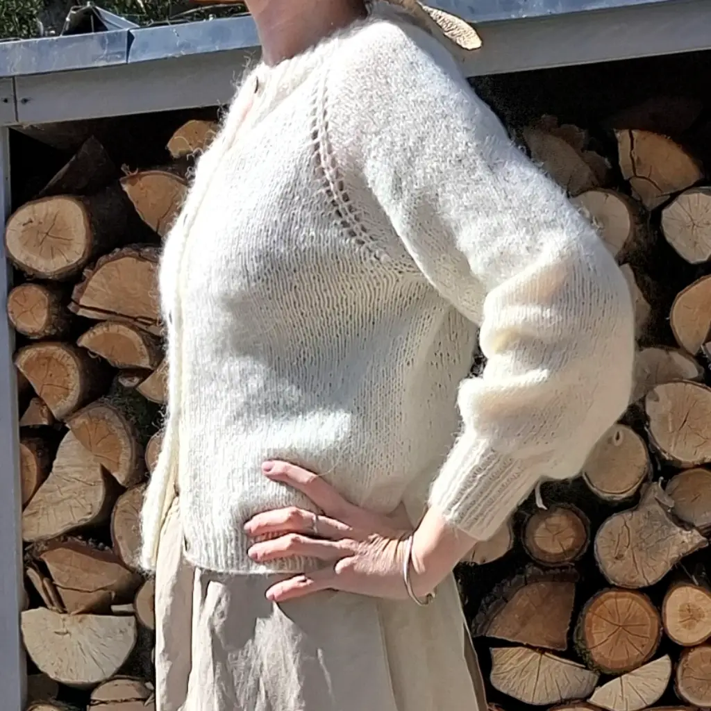 Damski sweterek rozpinany z długim rękawem z włóczki z suri alpaką i kaszmirem. Dostępny w pięciu rozmiarach i wielu pięknych kolorach do wyboru.
