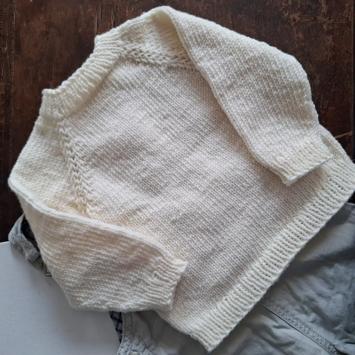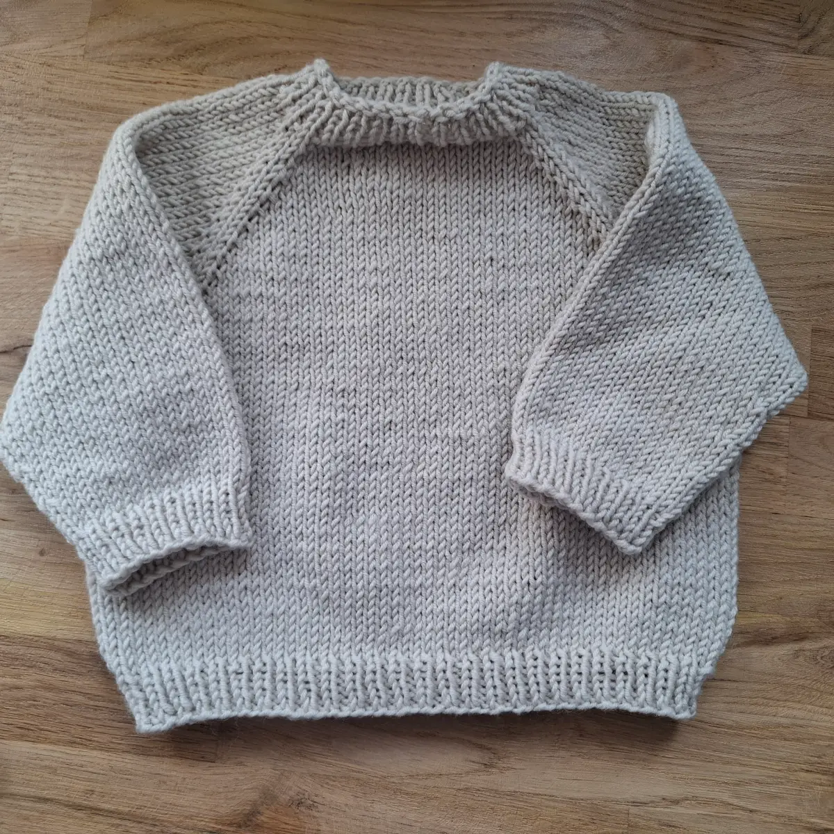 Sweterek basic merino wykonany ręcznie z włóczki 100% merino. Jest miękki i delikatny oraz bardzo przyjemny w dotyku. Wygodny raglanowy rękaw ułatwia ubieranie.