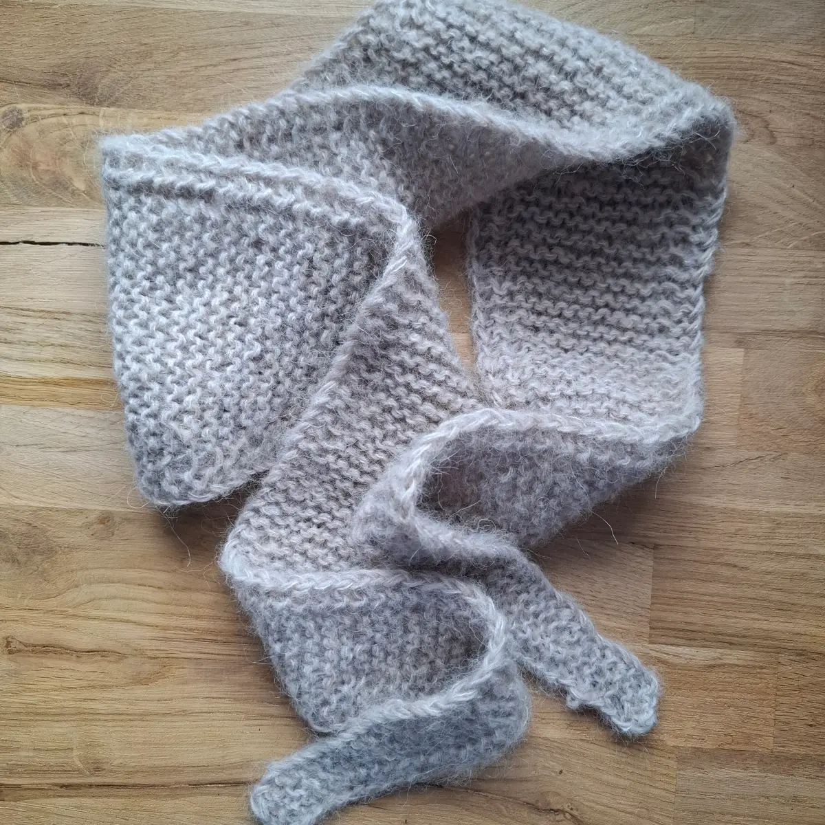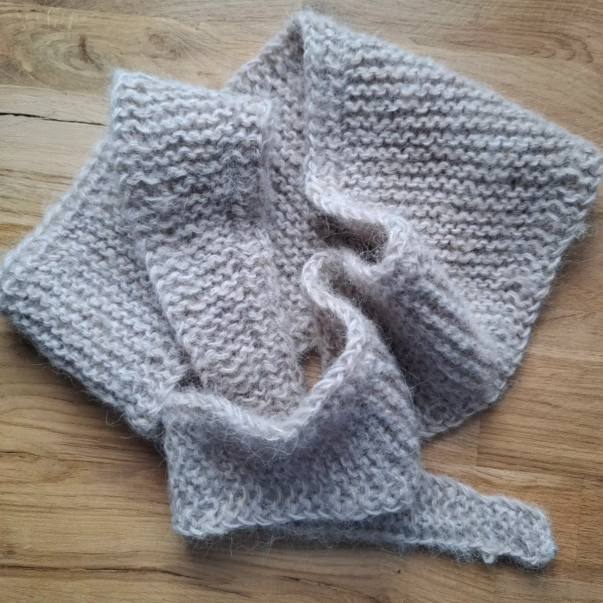 Szalik trójkątny damski wykonany z naturalnych włóczek wełnianych (66% merino, 25% alpaka, 9% jedwab). Połączenie włóczek dające miękkość i puszystość alpaki, delikatność jedwabiu oraz ciepło i elastyczność merynosa. Szalik ogrzewa szyję, idealnie sprawdzą się w chłodne zimowe dni.